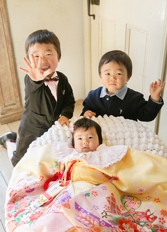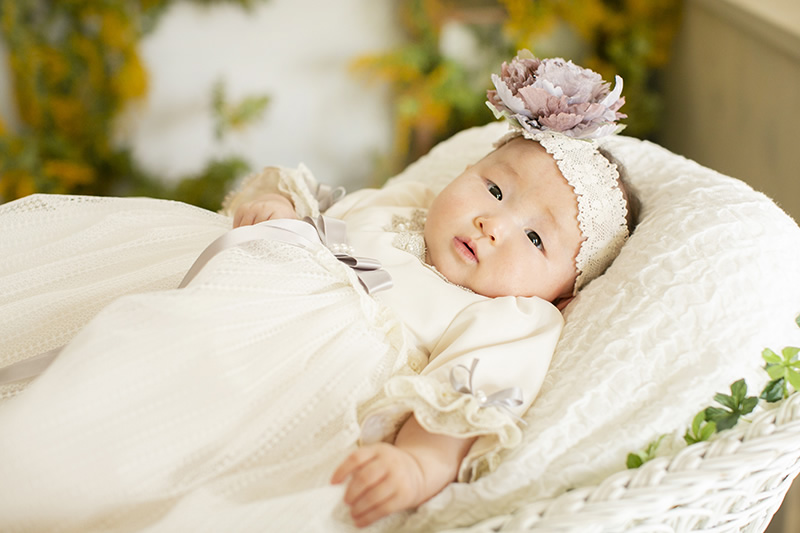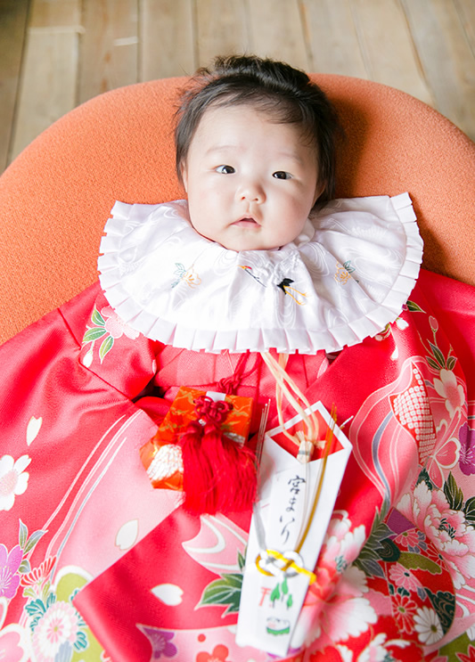 - 写真撮影は、赤ちゃんのお首が据わったり、笑顔がでてきやすい生後3ヶ月位がオススメです。